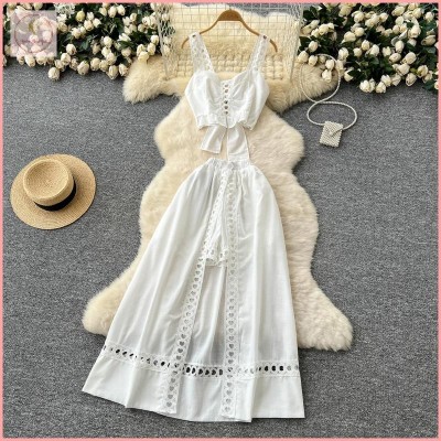 HB6408 Women's Mesh shoulder sleeveless vest dress for women in summer white skirt waist hip long skirt
