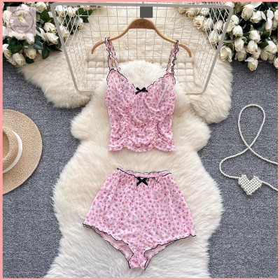 HB6375 Women's Set Spring New Fit Flower Ribbon Top + Skirt Two-piece Set