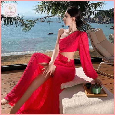 HB6195 Womens dress style design oblique shoulder slit holiday dress suitable for beach skirt skirt