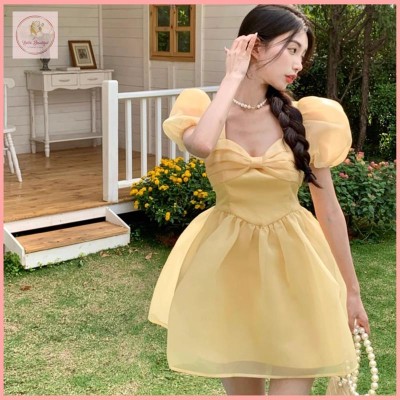 HB5497 Women's Ceremony Birthday Party Small Dress High-end Light Bowknot Puff Sleeve Puffy Dress Summer