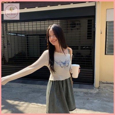 HB5334 Women's Spring and Summer Hollow Bow Knitted Sweater Suspender Dress Two-piece