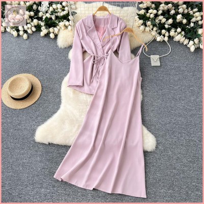 HB6171 Women's Set, high-grade strap waist versatile suit jacket, women's inner suspender dress, two-piece suit
