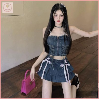 HB6199 Women's Set style high-end street-blasting style small denim two-piece suit skirt summer outfit set
